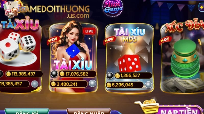 - Game bài hot: Tiến lên miền Nam, mậu binh, xì dách, tài xỉu MD5, xóc đĩa, nổ hũ, bắn cá