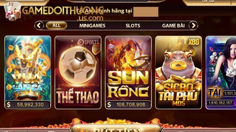 - Game bài hot: Tiến lên, Mậu binh, Xì dách, Tài xỉu, Nổ hũ, Bắn cá